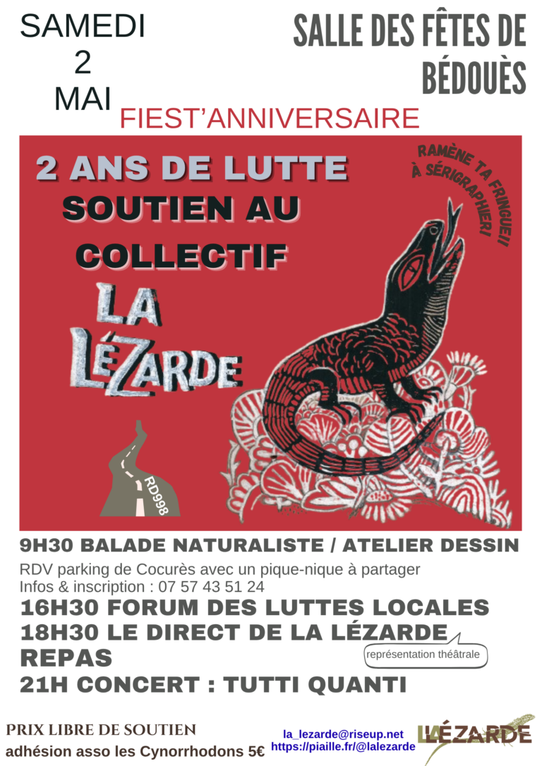 Le collectif La Lézarde qui fête ses deux ans de lutte organise le 2 mai prochain une Fiest'Anniversaire.