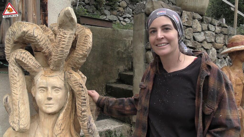 Formée à la sculpture et à l’ébénisterie, Anouk est arrivée dans les Cévennes il y a six ans. Elle y a développé un savoir-faire qu’elle réinvente à travers un outil atypique : la tronçonneuse.