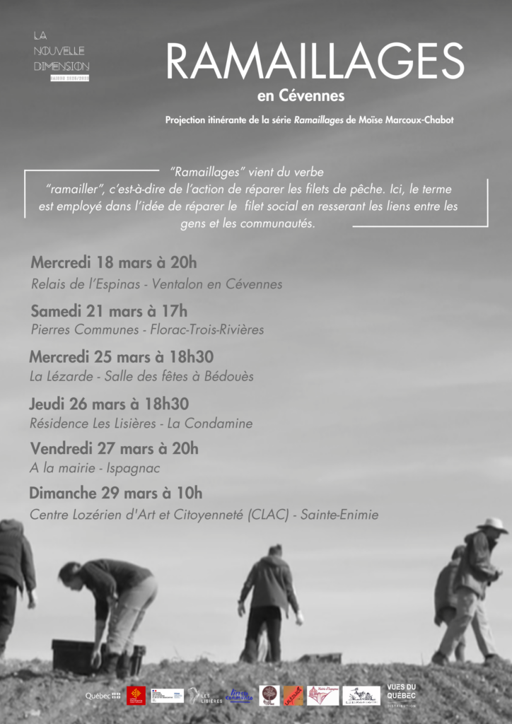 La prochaine projection de Ramaillages aura lieu mercredi 25 mars à 18h30 à la salle des fêtes de Bédouès avec le collectif de la Lézarde. La séance est gratuite et ouverte à toutes et à tous.